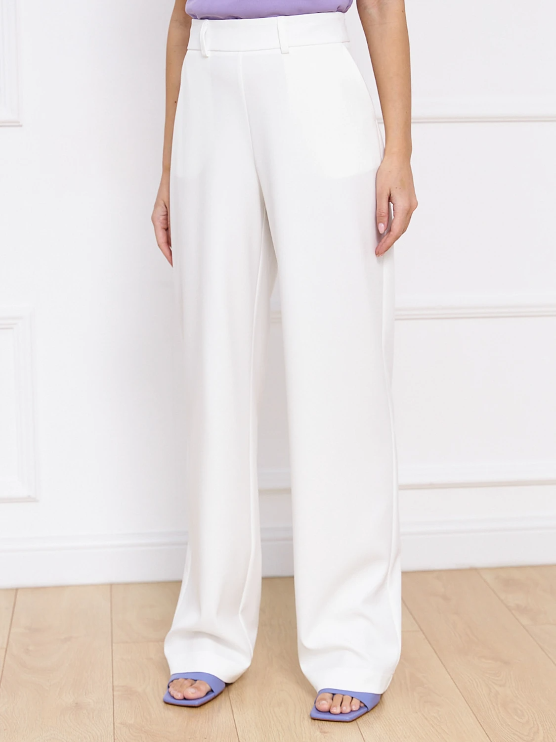 Широкие прямые брюки с притачным поясом.
