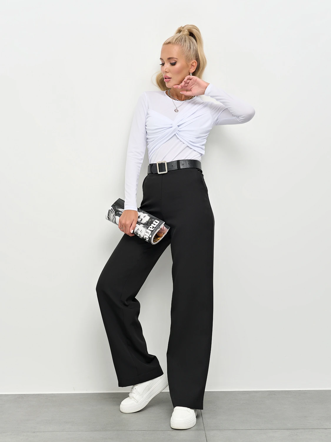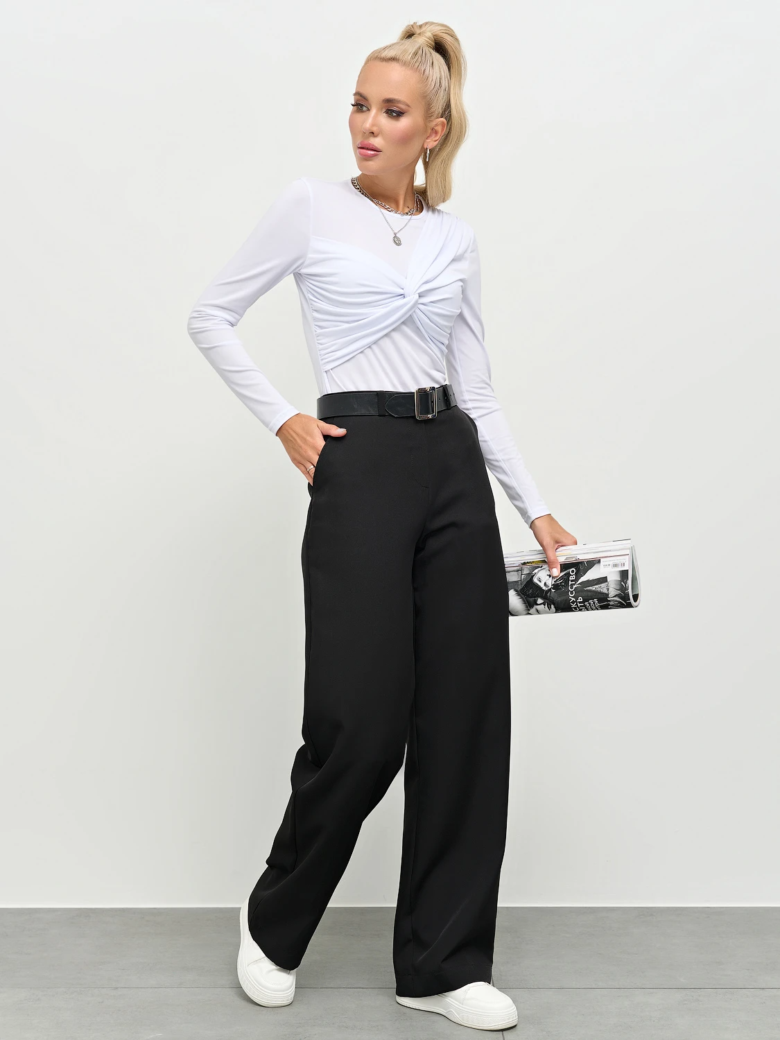 Прямые брюки из костюмной ткани.