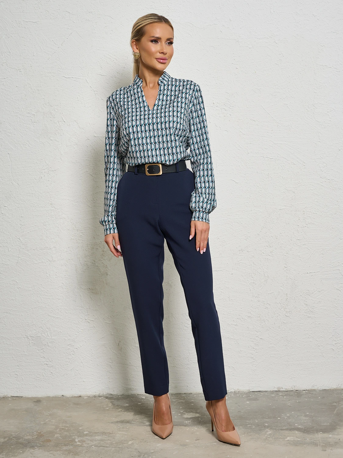 Брюки плотно прилегающие по бедрам и зауженные к низу.