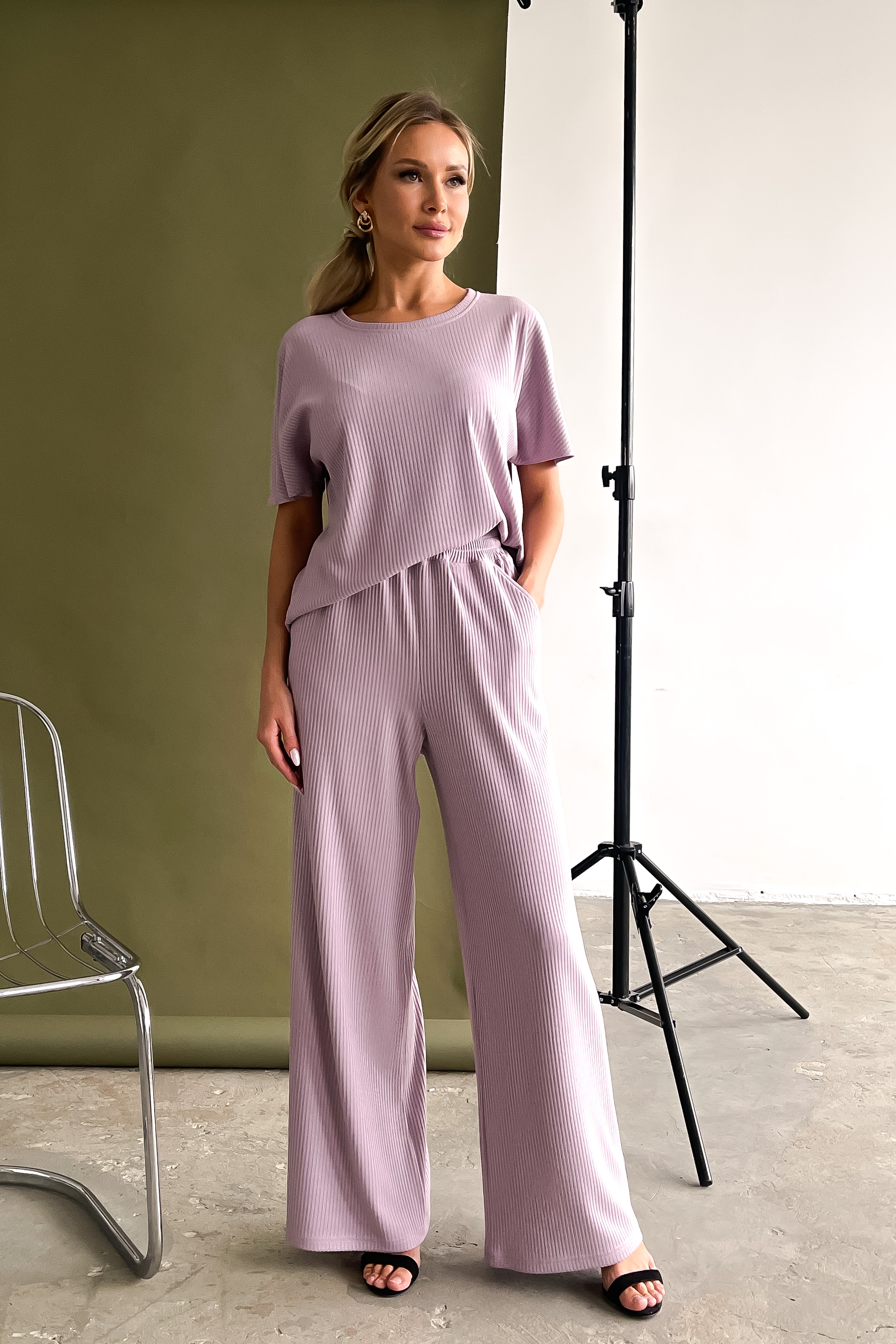 Практичные брюки свободного кроя из трикотажного полотна. Комфортную посадку на талии обеспечивает притачной пояс с эластичной резинкой. Модель без застежки.