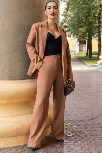 Комфортные классические брюки прямого силуэта. Свободный крой и притачной пояс с эластичной резиной по спинке обеспечивают безупречную посадку. Брюки оснащены молнией и пуговицей спереди, а также заложенными складками спереди и сзади. Высокая талия создает красивый силуэт, а карманы добавляют практичности. Низ изделия с широким подгибом.