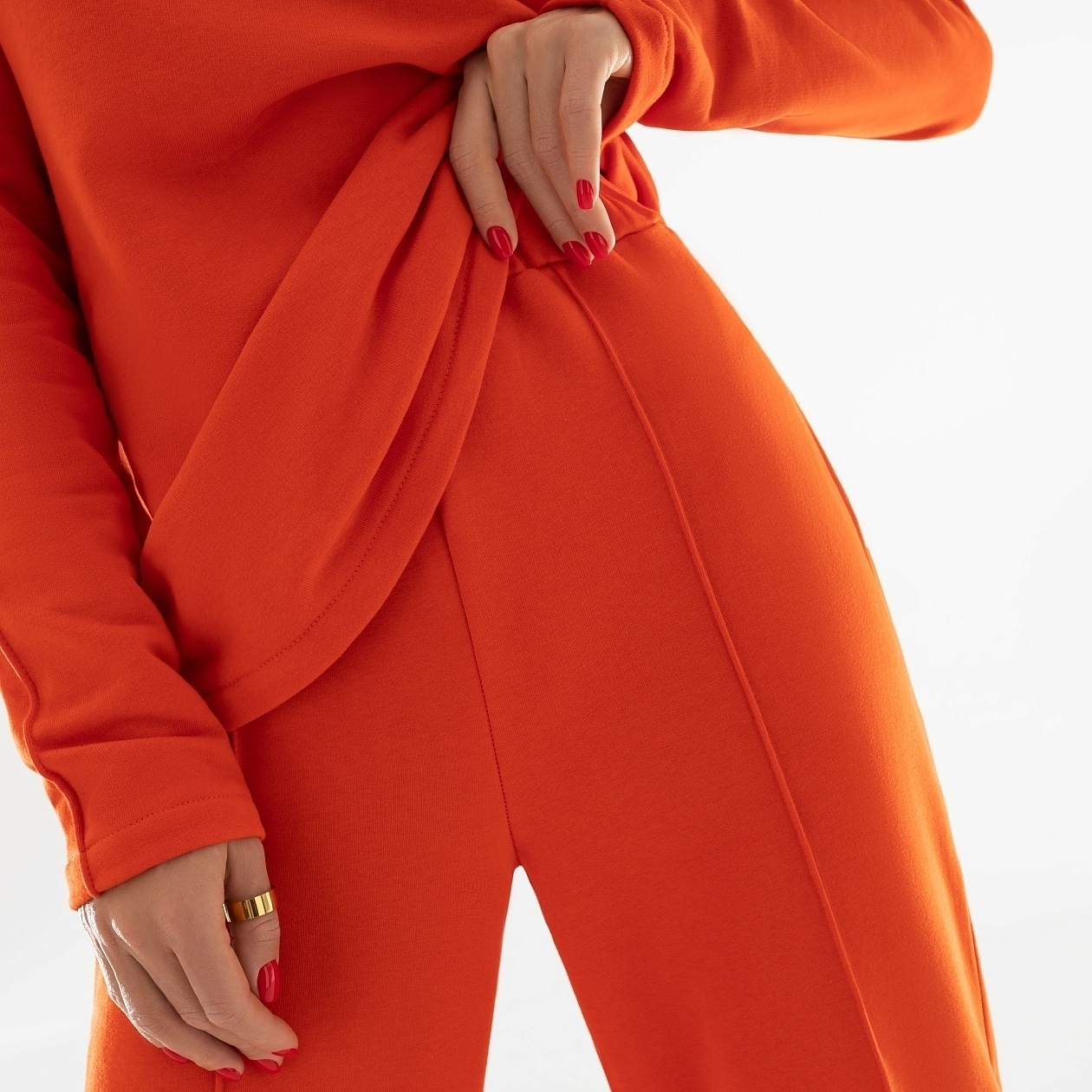 Высокое качество исполнения. Для пошива коллекции PREMIUM отбираются самые качественные ткани. Современный тренд – это натуральность и экологичность Примерьте новые брюки в оттенке Orange Peel из хлопка!