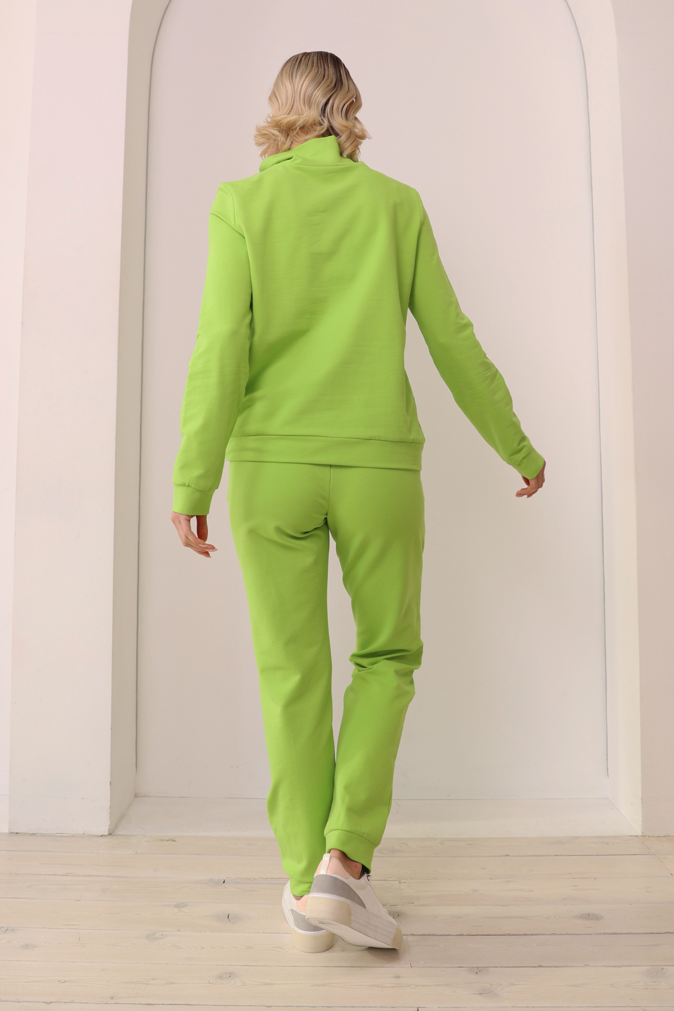 Брюки из трикотажа с отстроченными стрелками, манжетами и декоративными замками на штанинах. Ткань: футер 2-х нитка.