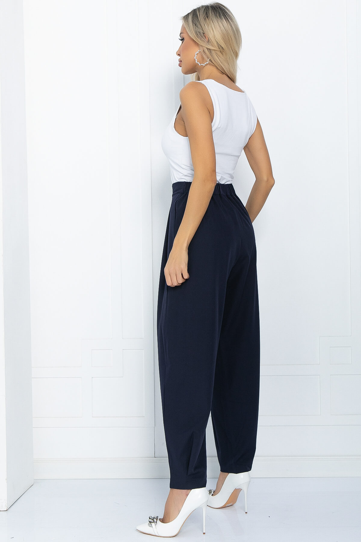 Стильные и удобные брюки-бананы разнообразят ваш гардероб и не оставят равнодушными. Каждая деталь здесь уникальна: застежка, карманы по бокам, складки по линии талии, защипы по низу брюк и свободный крой от бедра. Идеально сочетаются с различными стилями одежды - от спортивного до более формального. На поясе по задней половинке брюк - резинка, для более комфортной посадки.