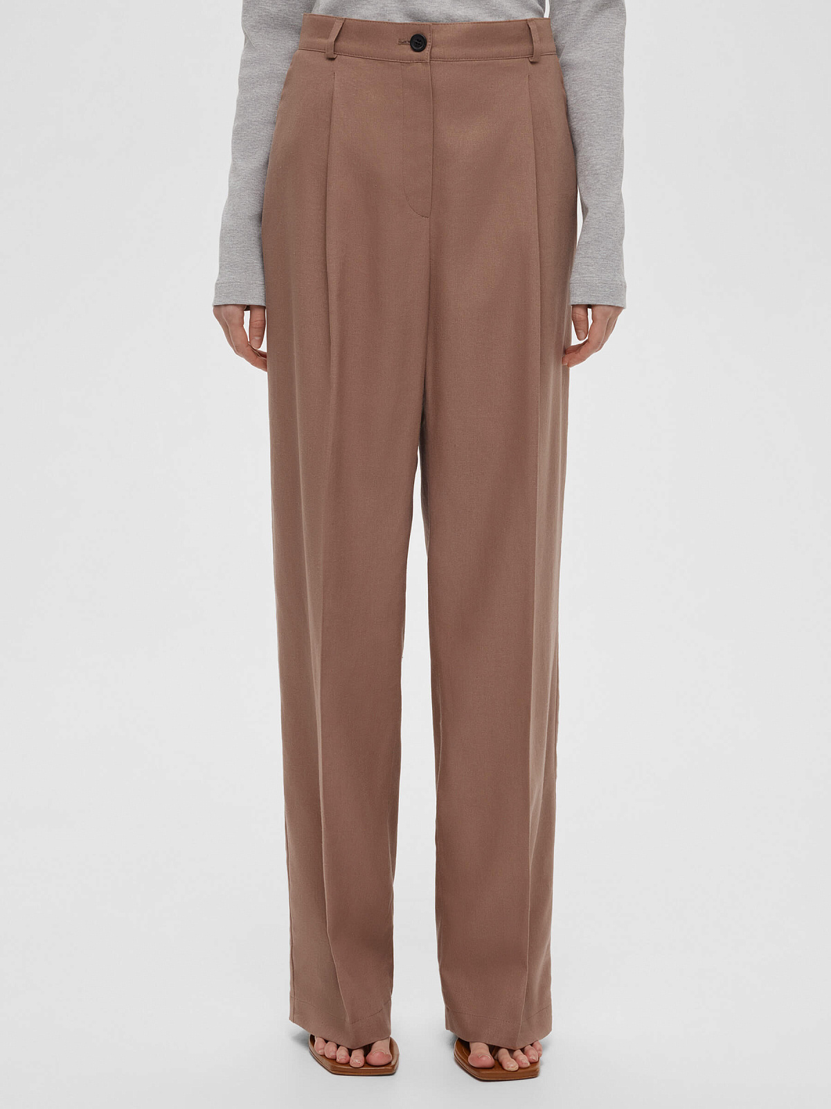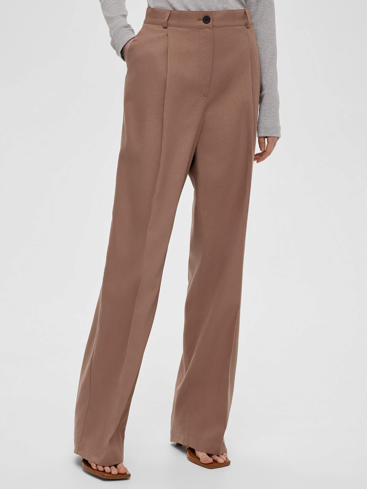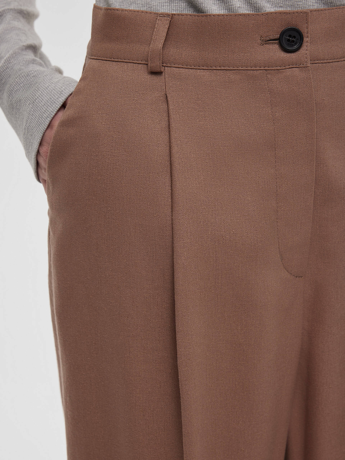 Брюки свободного кроя с защипами из льна 0195, светло-коричневый