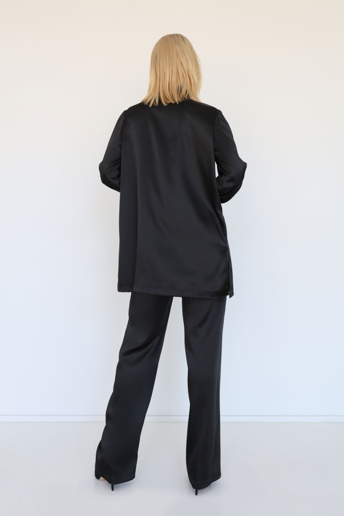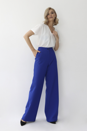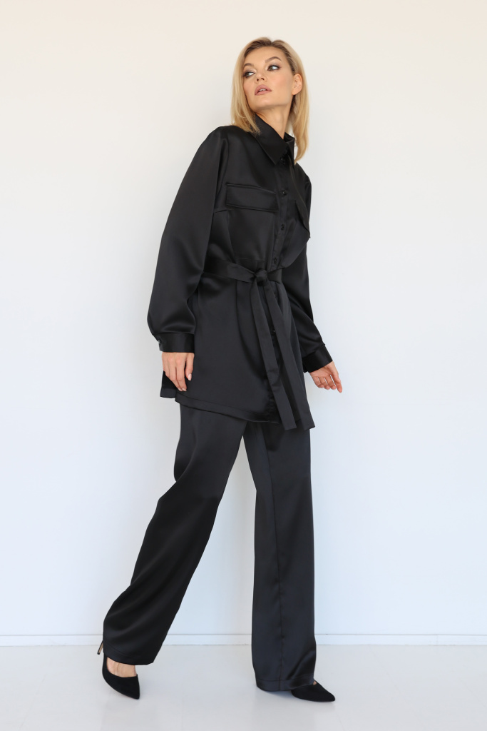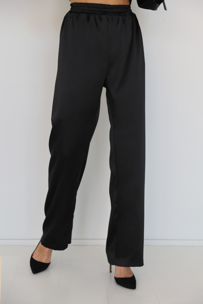 Брюки из плотного шёлка прямого кроя. Пояс на резинке