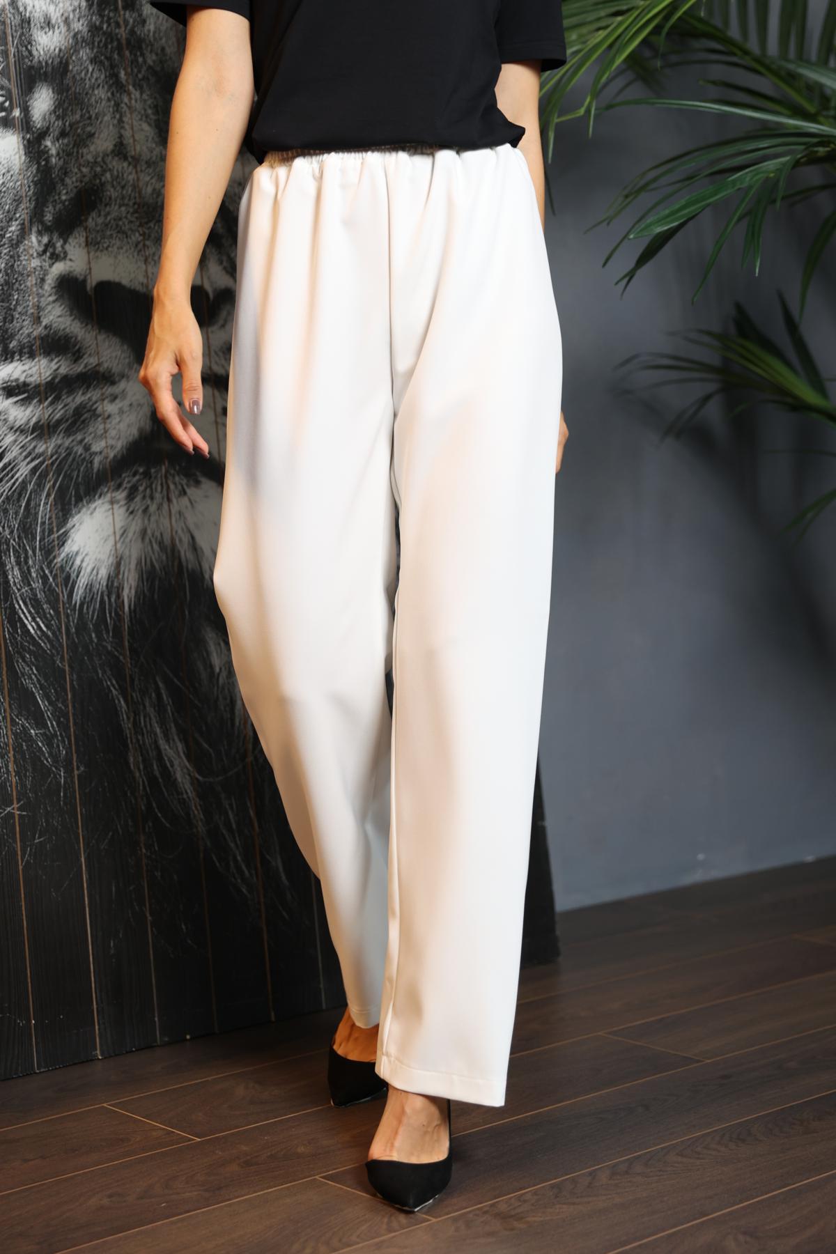 Брюки прямые, свободного кроя в пижамном стиле. С резинкой на поясе.