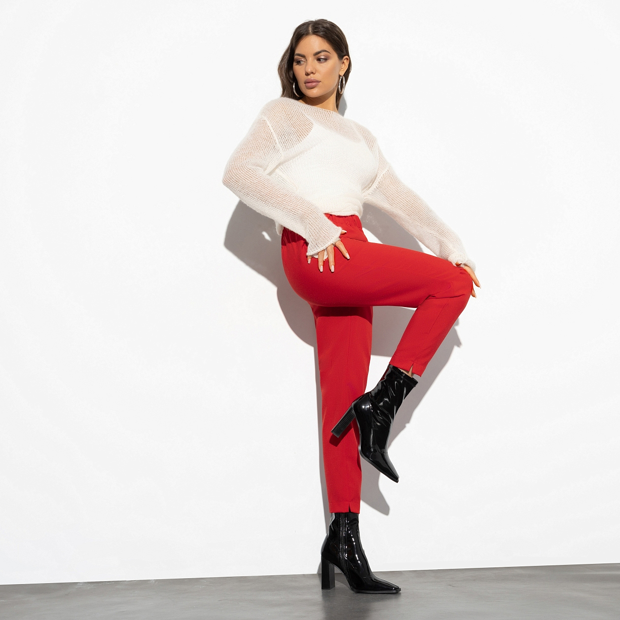 Эти брюки — это не просто одежда, это символ уверенности и стиля. Представьте себе, как красный габардин обтекает вашу фигуру, создавая неповторимый образ, который привлекает внимание и вызывает восхищение. Каждая деталь продумана до мелочей, чтобы подчеркнуть вашу индивидуальность. Потрясающий акцент на талии придаёт изящество вашей фигуре, а яркий красный цвет говорит о смелости и решительности. Когда вы выбираете эти брюки оптом, вы инвестируете не только в качество, но и в стиль, который станет визитной карточкой вашего гардероба.