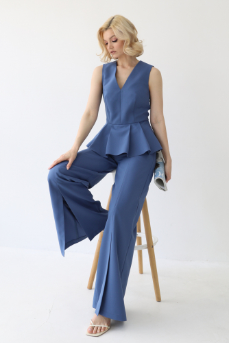 Брюки зауженные со средней посадкой, притачным поясом и шлевками, застежкой на молнию.