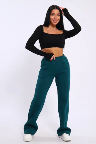 Предлагаем Вашему вниманию новую модель: женские брюки из трикотажа средней плотности с теплым начесом . Изделие из такого материала поддерживает оптимальную температуру и не сковывает движения, а за удобную посадку на талии отвечает притачной пояс с регулировочным декоративным шнуром. Модель декорирована отделочными строчками на передних половинках брюк. Для ключей, телефона и прочих мелочей предусмотрены боковые карманы. Такая модель брюк - незаменимая вещь в гардеробе и девушки и женщины. Добавление полиэстера к хлопковому волокну в состав трикотажа, придает ему особую эластичность и стойкость к воздействию ультрафиолета. Эти брюки идеально подходят для повседневного использования, для прогулок и отдыха на свежем воздухе, для путешествий. В наших брюках Вам будет максимально комфортно в холодное время года. Носите с удовольствием! Модель представлена широким размерным рядом с 46р по 60 р.