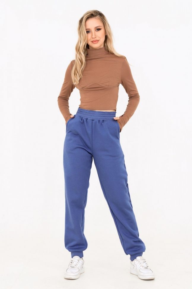 Ткань: интерсофт начес; Состав: хлопок 45%, п/э 55%; Сезонность: зима, осень; Стиль: повседневный; Застежка: без застежки; Карман: с карманами; Производство: г. Иваново, швейное производство НАТАЛИ; Тип изделия: брюки; Цвет: синий