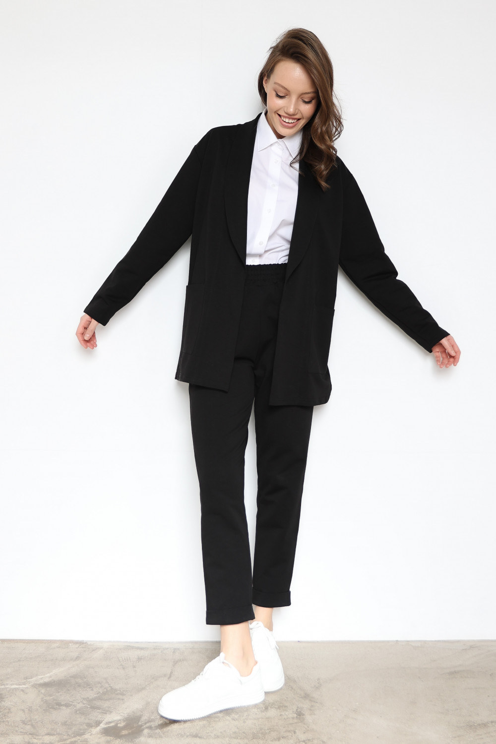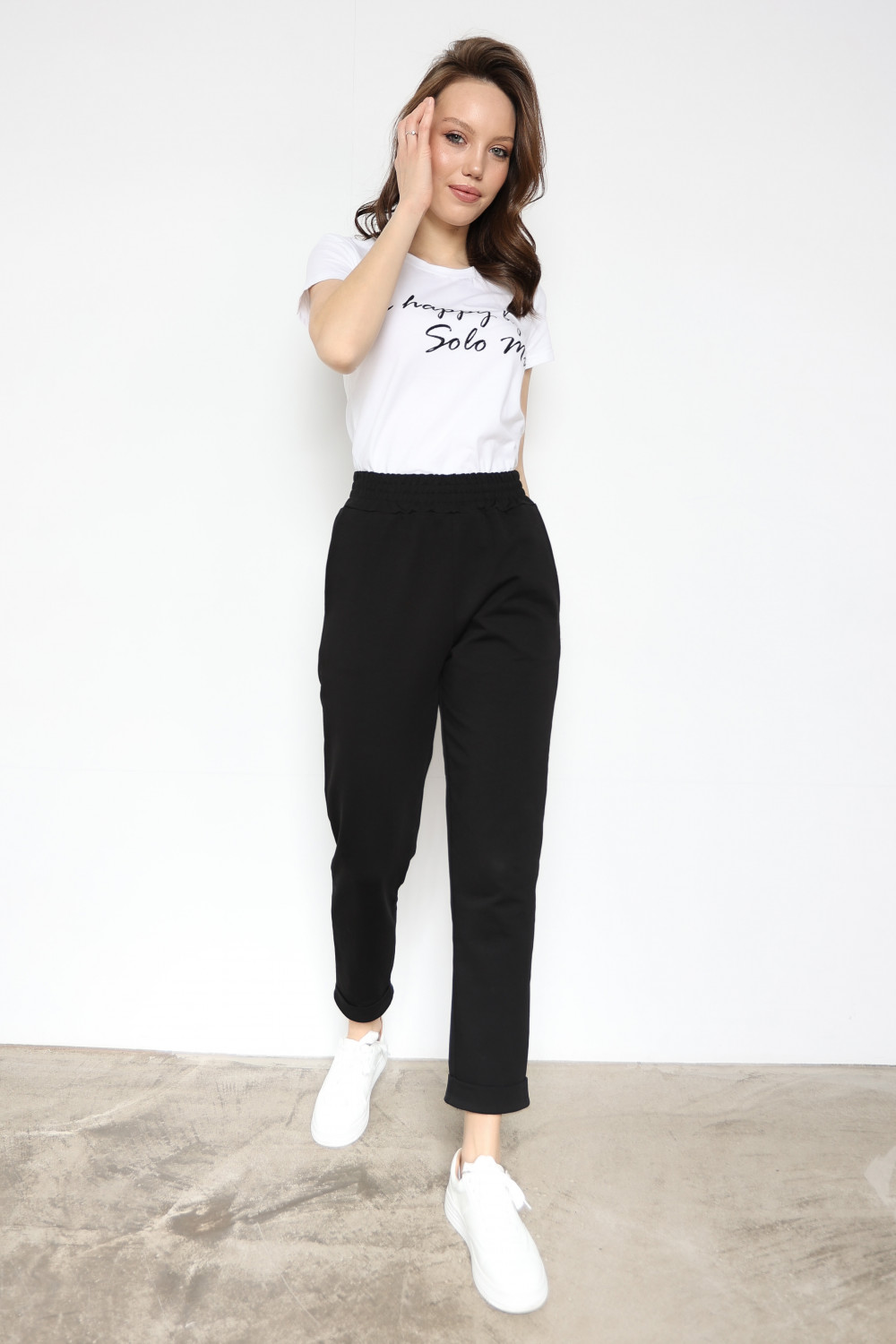 Лаконичные брюки отличаются легкостью и комфортным прилеганием к телу. Мягкая резинка на талии обеспечивает идеальную посадку. Штанишки длиной 7/8 с отворотами по низу и карманами, усиленный шов сиденья, на талии с резинкой выполнены из мягкого и нежного футера, что придает ему стильный образ. В сочетании с нашими джемперами Solo Mio из этой серии и футболками получается прекрасный комплект ( костюм ), который подходит как для повседневной жизни, для дома, для прогулок и путешествий, так и для вечеринки. Получится образ в стиле спорт шик. Штаны женские / укороченные / классические / зауженные / больших размеров / брюки женские карго / брюки для дома женские / брюки женские офисные / брюки женские 7/8 весна лето/ брюки костюмные женские / нарядные брюки женские / женские трикотажные брюки / брюки женские летние / брюки женские трикотажные зауженные / штаны для женщин / брюки женские больших размеров / брюки кюлоты / укороченные брюки женские / брюки домашние женские хлопок Футер 2-х нитка