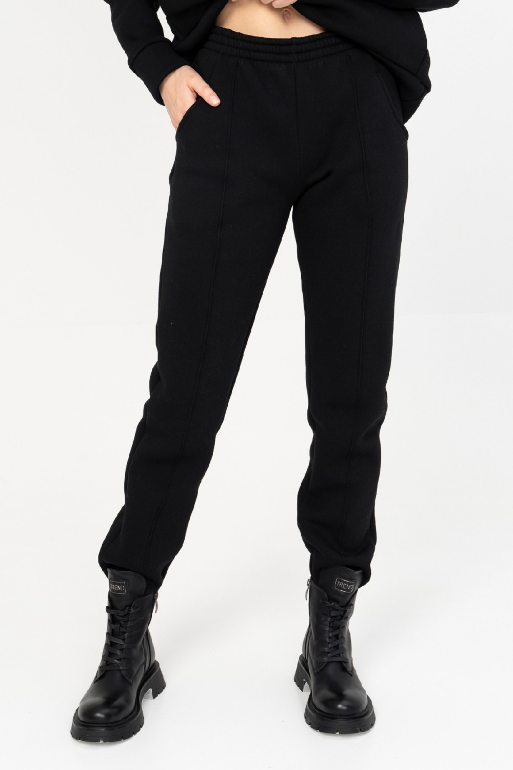 Утепленные брюки прилегающего силуэта чуть зауженные к низу выполнены из хлопкового трикотажа с начёсом. Брюки с высокой посадкой, с карманами и мягкой резинкой по талии. Отстрочка по центру на передней половинке брюк придают особый шик. Выглядит это очень эффектно и стильно. Модель универсальна и сочетается, как с толстовками, свитшотами, так и с футболками.Обращаем внимание, что цвет изделия может немного отличаться от оттенка, представленного на фотографиях. размер одежды 44 Длина брюк по боковому шву 42 размер 104см. 44 размер 104см. 46 размер 104см. 48 размер 105см. 50 размер 105см. 52 размер 105,3см. 54 размер 106см. х/б - 70 %, ПЭ - 30 %