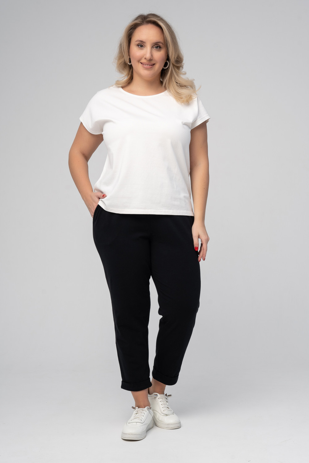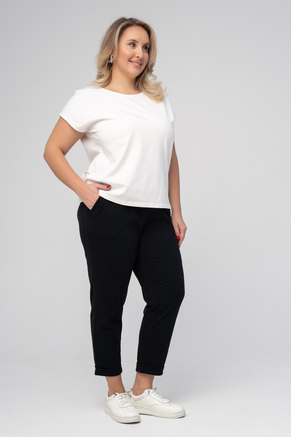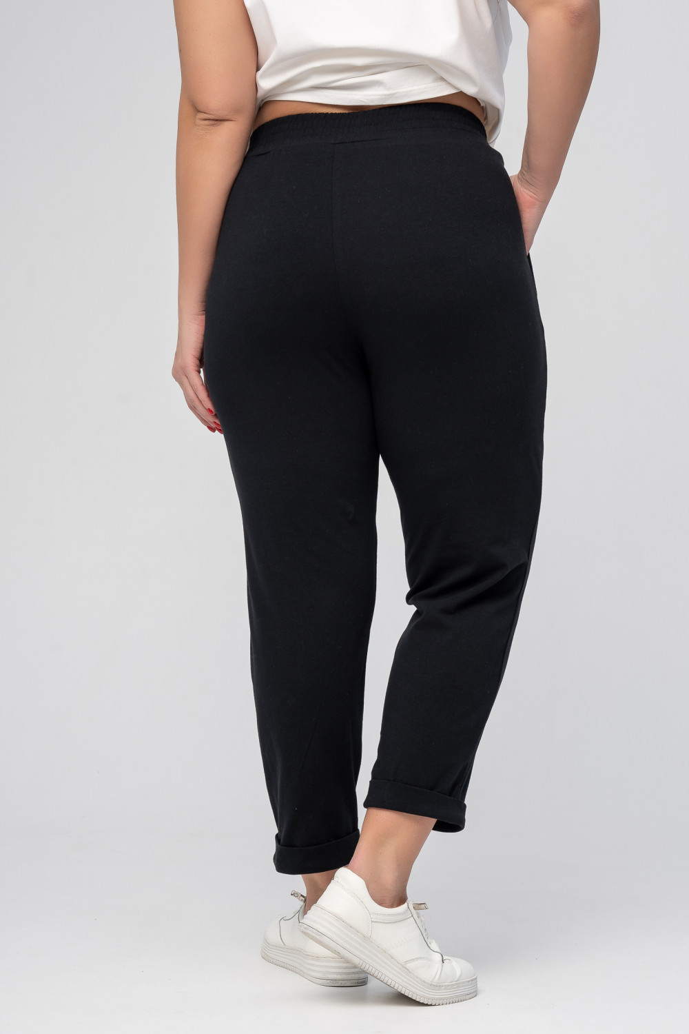 Лаконичные брюки из кулирки с лайкрой отличаются легкостью и комфортным прилеганием к телу. Мягкая резинка на талии обеспечивает идеальную посадку. Брюки длиной 7/8 с отворотами по низу и карманами, на талии с резинкой, что придает ему стильный образ, а заодно выгодно подчеркивает фигуру.