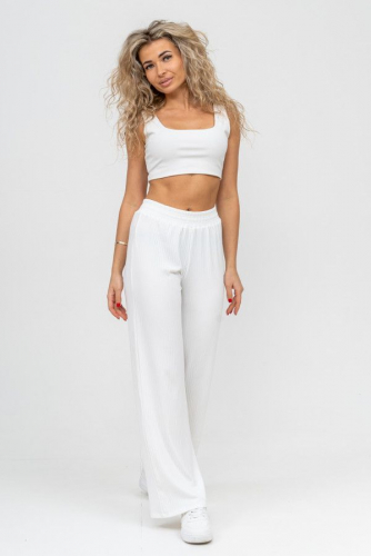 Стильные брюки сезона выполнены из высококачественного материала - лапша, который в свою очередь обладает большим количеством положительных качеств: эластичность, гигроскопичность, износостойкость, комфорт, не линяет и не выгорает. А фактура ткани визуально вытягивает ваши ножки и делает стройнее. Лёгкие прямые брюки с высокой посадкой в стиле палаццо из красивого материала акцентируют достоинства, а пояс резинка, выполненный на специализированной поясной машине, не сдавливает талию, поэтому подойдёт также для беременных девушек. Брюки выполнены в свободном стиле, что идеально подойдёт для дома, отдыха и спорта. А так же - это идеальный вариант на каждый день, который вы можете носить сочетая с другими вещами, создавая свой идеальный образ. А различные вариации верха с брюками - это отличный вариант для создания праздничного образа. Брюки сделают образ женщин, девушек, студентов и подростков ярким и любимым как дома, так и на улице, работе, учёбе.