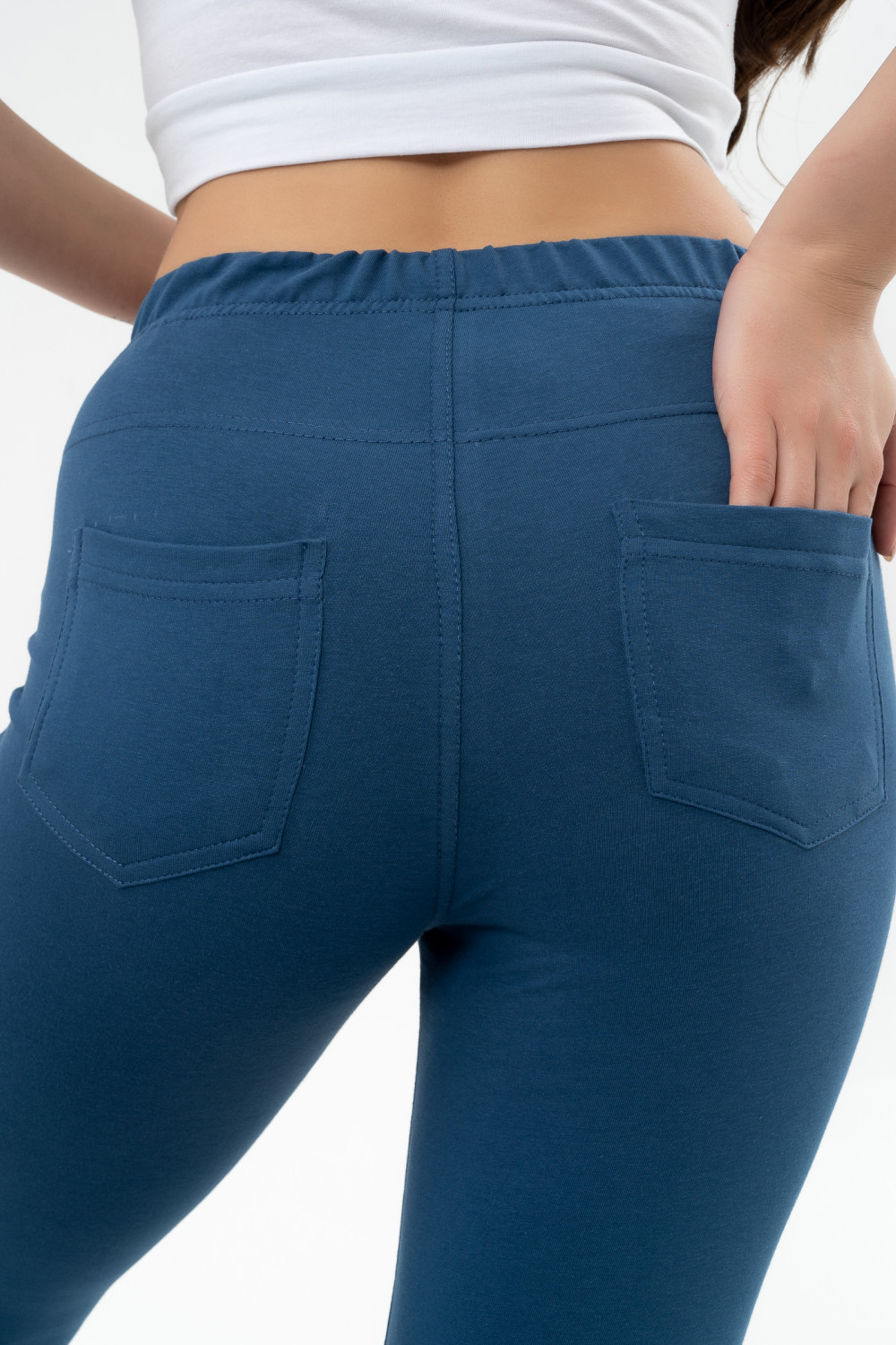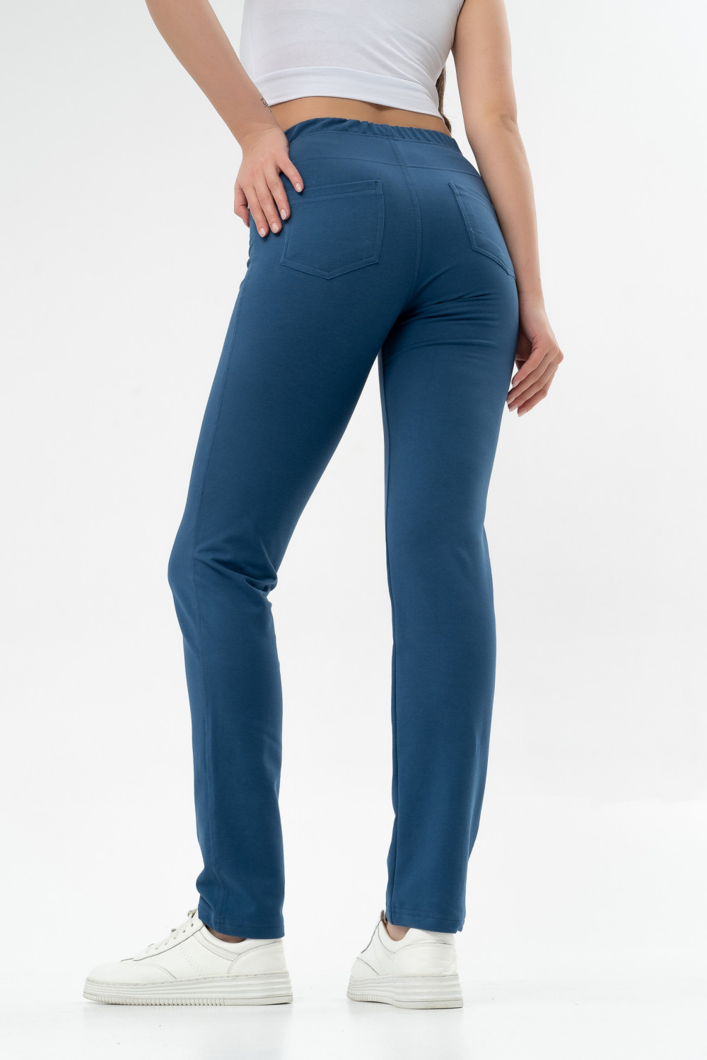 Стильные брюки отличаются легкостью и комфортным прилеганием к телу. Мягкая резинка на талии обеспечивает идеальную посадку. Брюки, прилегающего силуэта выполнены из мягкого хлопкового футера, что придает ему стильный образ, а заодно выгодно подчеркивает фигуру. Декоративные строчки и накладные карманы сзади придают особый шик. Выглядит это очень эффектно и стильно. В комплекте с нашими джемперами из этой серии, футболкой или топом получается прекрасный костюм, который подходит как для дома, так и для прогулок и путешествий.