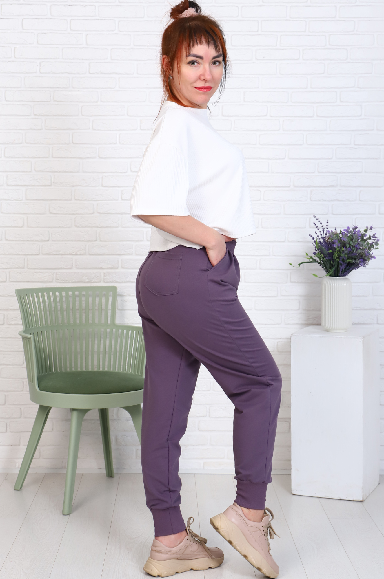 Эффектные спортивные брючки свободного кроя - это идеальный вариант для прогулок. Идеальная, очень комфортная посадка, пояс на широкой резинке, с защипами, простроченный на спец. машине. Удобные карманы боковые и накладные сзади, снизу модель на высоком эластичном манжете.