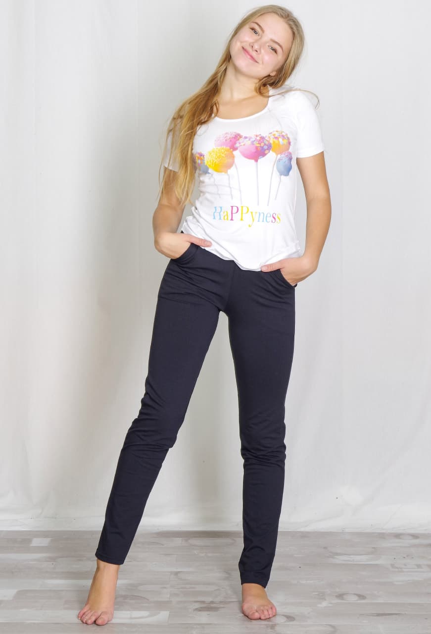 Удобные женские зауженные брючки спортивной модели. Пояс на широкой резинке, два боковых кармана. Хорошая и недорогая модель на каждый день! Ткань — футер с лайкрой.