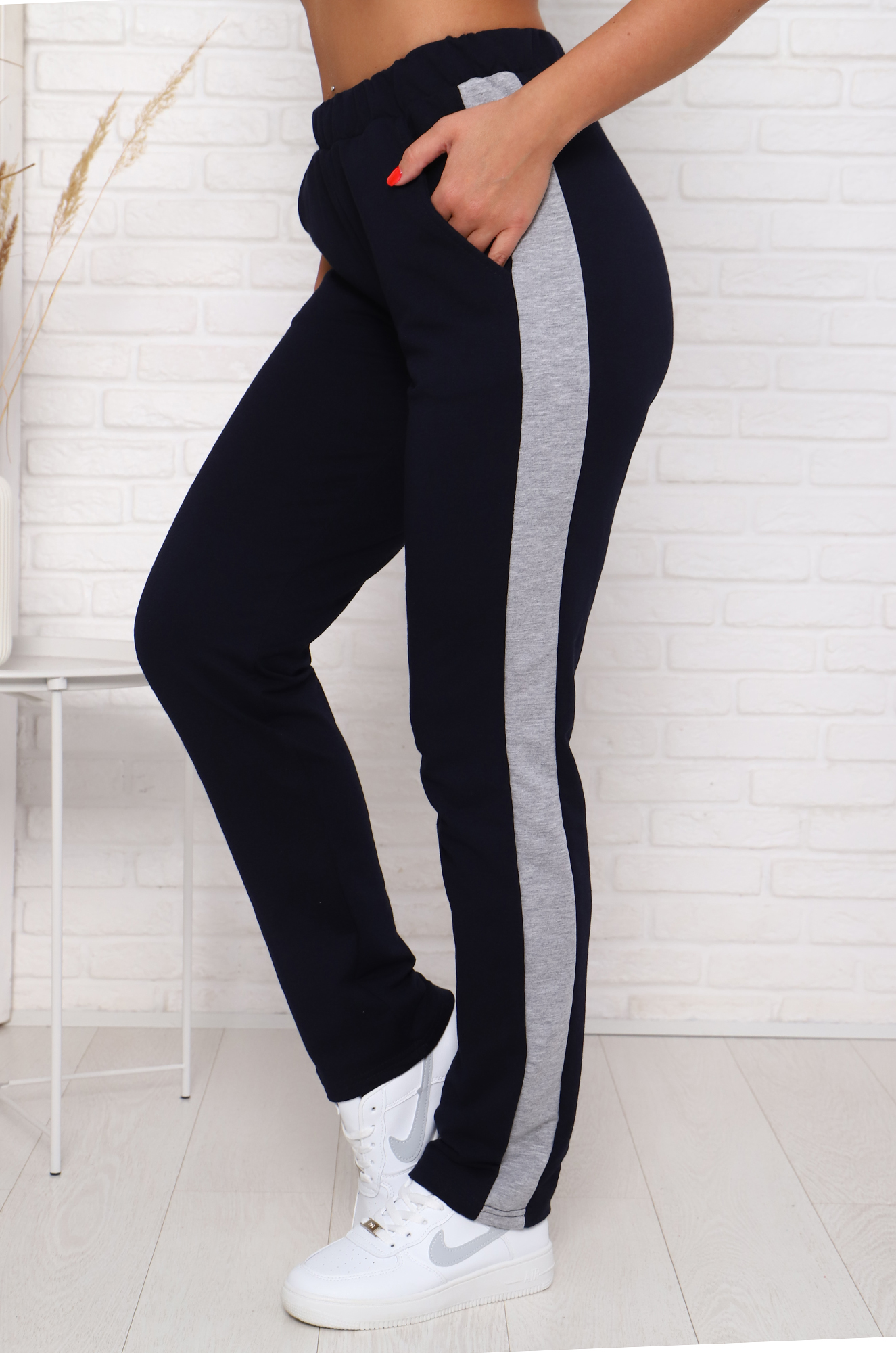 Удобные женские зауженные брючки спортивной модели. По бокам широкие лампасы. Пояс на широкой резинке, два боковых кармана. Стильная модель на каждый день! Ткань — футер с лайкрой.