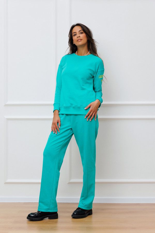 Повседневные женские брюки в спортивном стиле, станут отличным дополнением к вашему гардеробу. Cовременный дизайн и комфортная посадка позволят вам чувствовать себя уверенно и стильно в любой ситуации. Модель доступна в двух расцветках: яркий зелено-бирюзовый и графитовый. Штаны имеют прямой крой, который подчеркнет вашу фигуру и создаст элегантный образ. Пояс на эластичной резинке, что обеспечивает идеальную посадку на талии и комфорт при движении. Декоративная отстрочка по всей длине изделия придает брюкам особый шарм и стильный вид. Она создает эффектный контраст и привлекает внимание к деталям. Брюки осенние отлично сочетаются с различным верхом и обувью, позволяя создавать разнообразные образы.