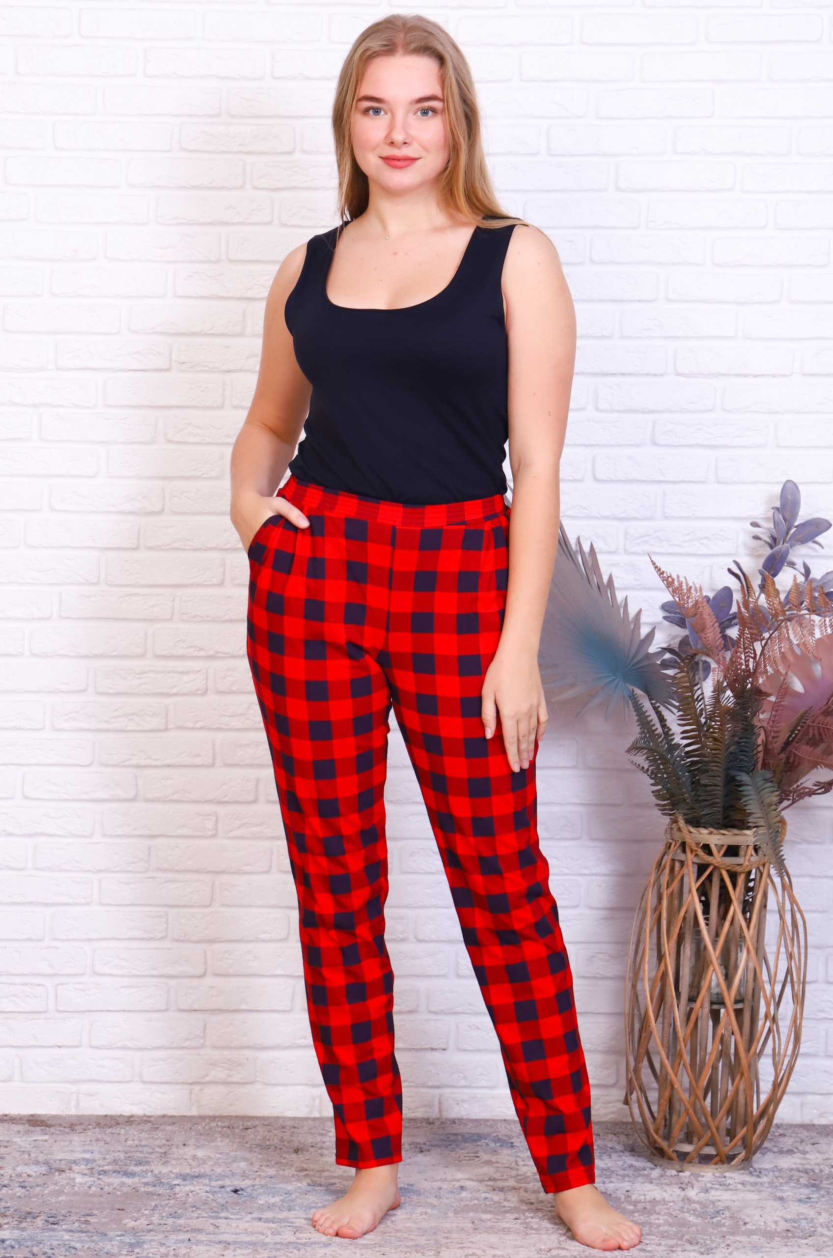 Уютные домашние брючки сочных расцветок. По бокам удобные карманы, пояс на широкой резинке.