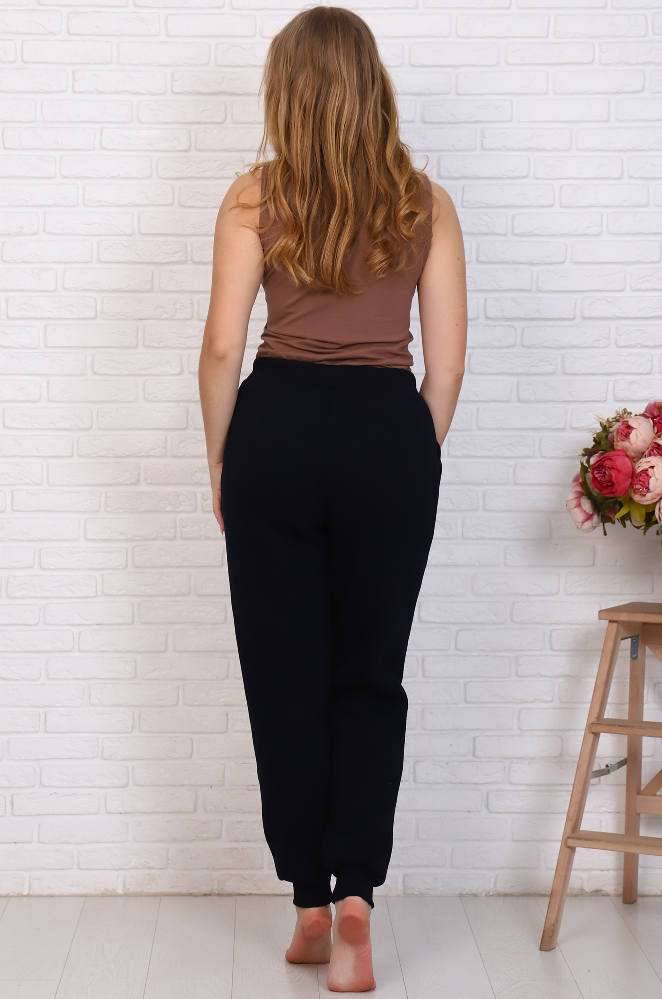Тёплые и уютные зимние брюки для активного отдыха или вечерних прогулок. Модель снизу на эластичных манжетах, пояс на резинке регулируется шнурком, удобные боковые карманы.