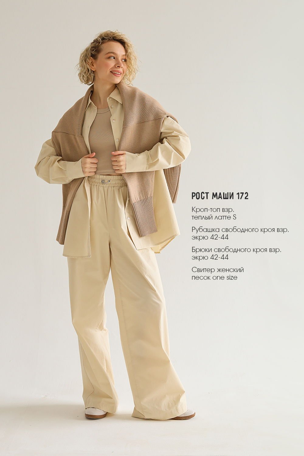 Брюки женские свободного кроя экрю