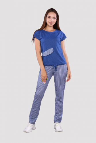 Оригинальный легкий костюм из 100% хлопка. Универсальный вариант для активного отдыха, спорта или дома. По низу футболки кулиса с завязками. Комфортные брюки с карманами. Футболка и брюки можно носить не только комплектом, но и в комбинациях с другими вещами. Максимально удобен при носке и выгодно сидит на фигуре.   Подарите себе комфорт, индивидуальный стиль и свободу.