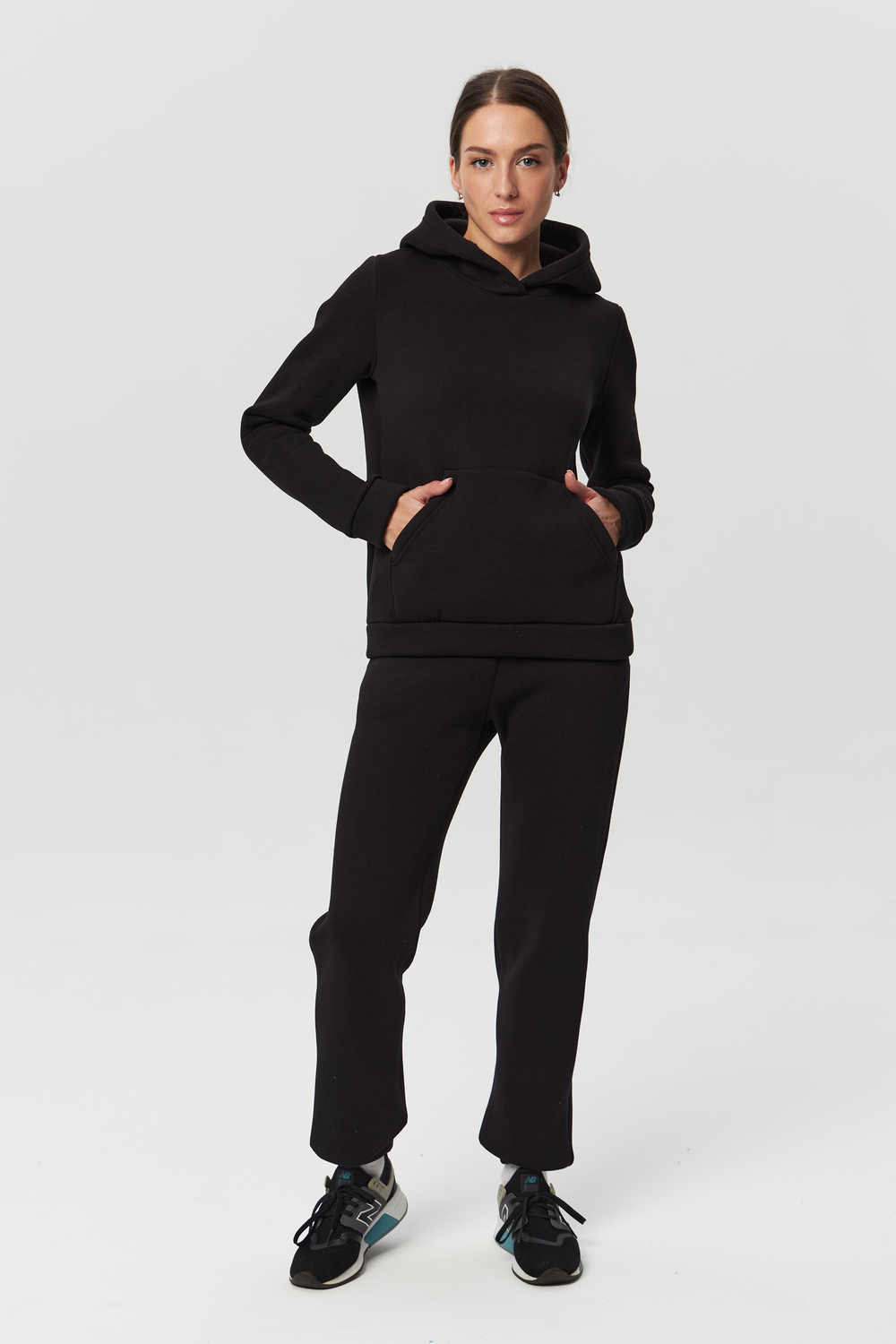 Костюм с начёсом -прекрасный вариант повседневной одежды для осени и зимы. Толстовка прямого кроя, имеет классическую пройму с втачным рукавом с притачными манжетами и поясом из ткани верха. На полочке расположен карман кенгуру. Капюшон однослойный, он прекрасно защитит голову в прохладную погоду. Брюки на резинке, с боковыми наклонными карманами, по низу штанины вшита внутрь резинка.