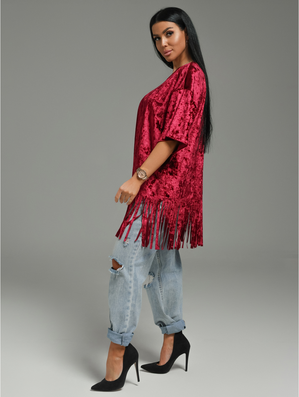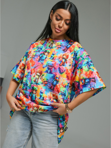 Футболка oversize с коротким втачным рукавом. По низу футболки бахрома.