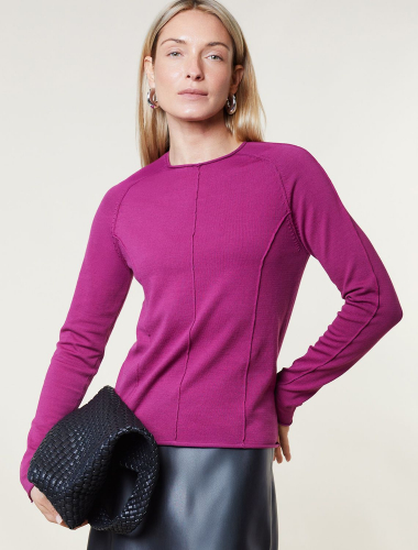 Рост 172, бюст 88, талия 64, бедра 88 Джемпер тонкой вязки выполнен из мягкой хлопковой пряжи. Модель с декоративными швами идеально сидит по фигуре подчеркиваяч изгибы тела. Подходит для любой фигуры и впишется в любой гардероб. Изделие дополнено металлическим логотипом бренда.