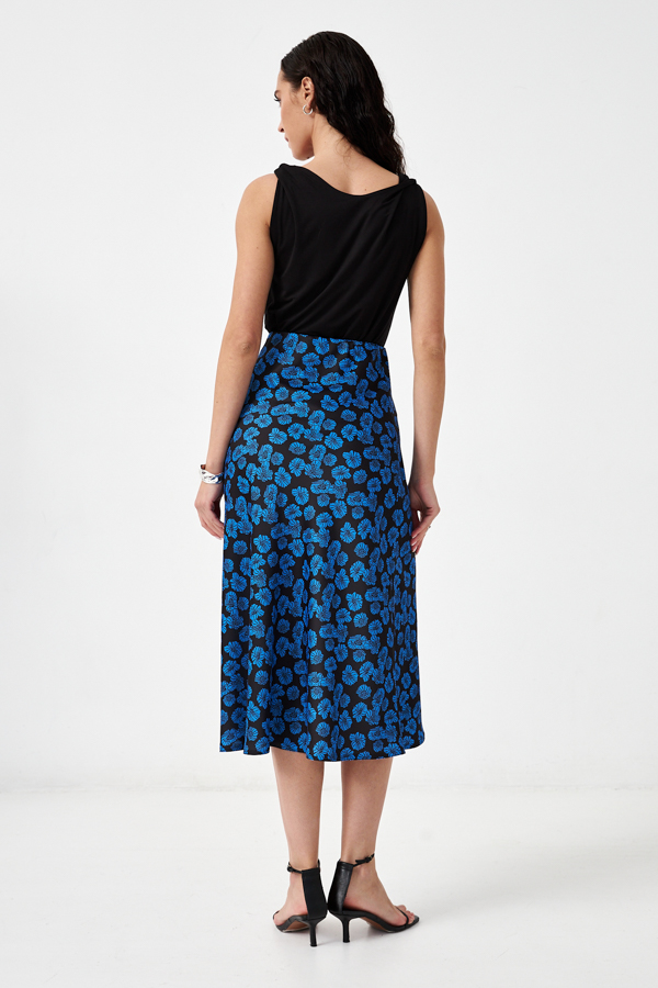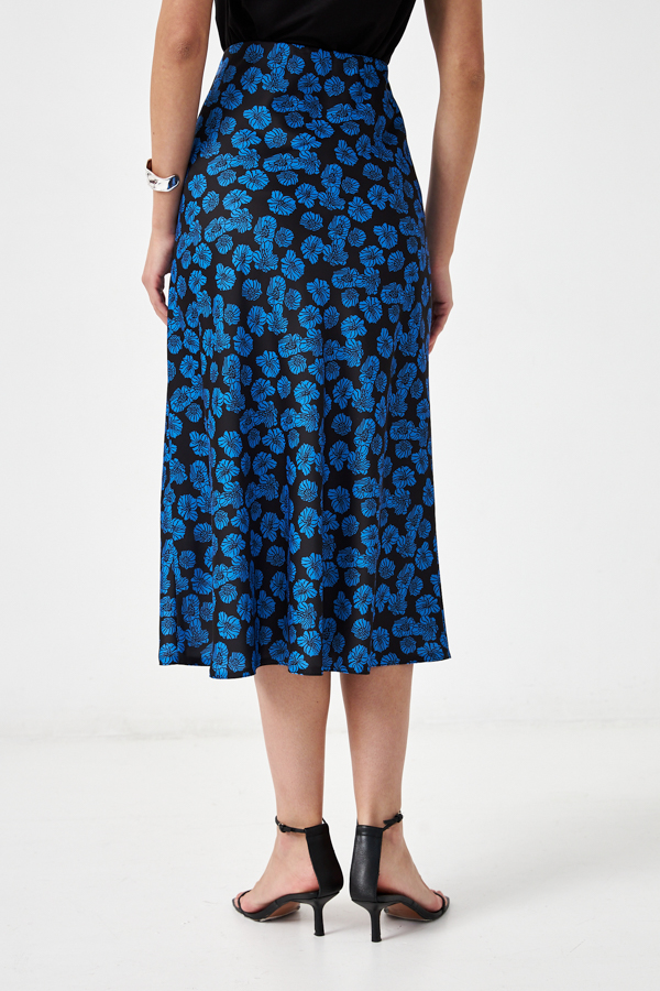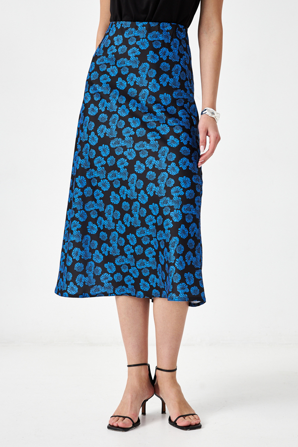Юбка прямого силуэта из атласной ткани. Крой юбки по косой, на линии талии скрытая резинка.