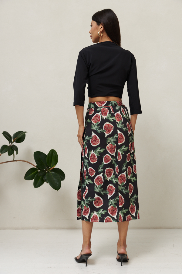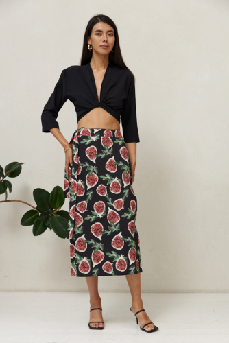 Юбка с запахом на широких завязках из вискозной ткани. Прямой силуэт с притачным поясом. Изделие с запахом не только выглядят интересно, но и делают фигуру более гармоничной.