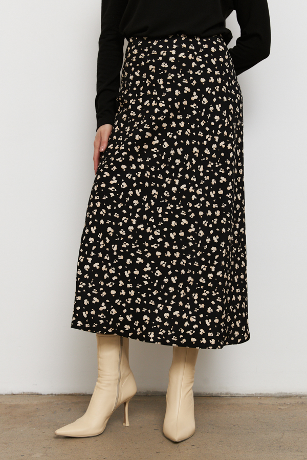 Юбка, слегка расширенная книзу из вискозной ткани. Крой юбки по косой, на линии талии скрытая резинка.
