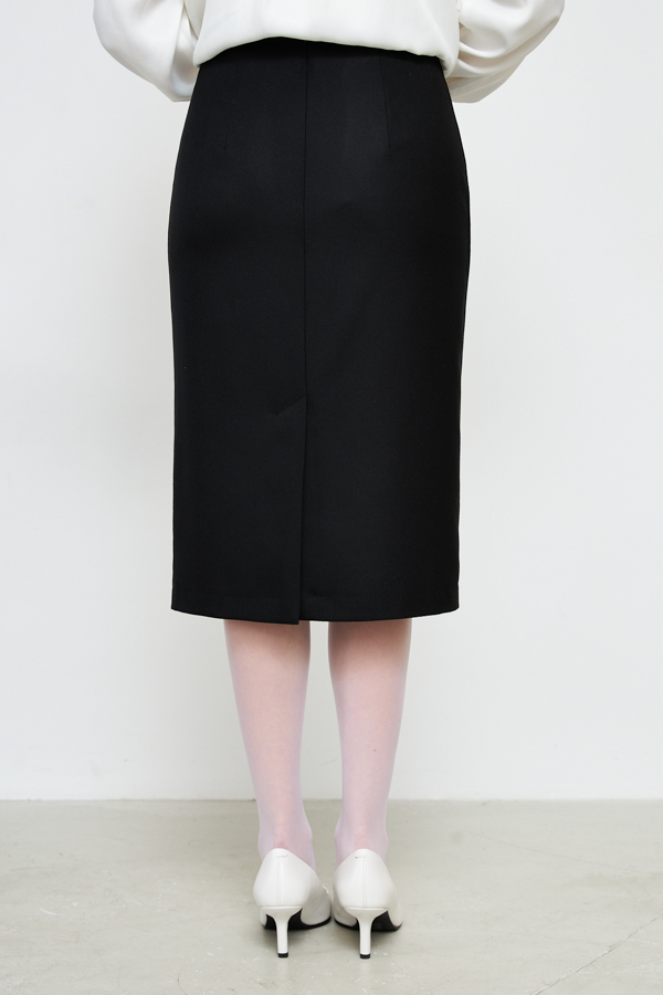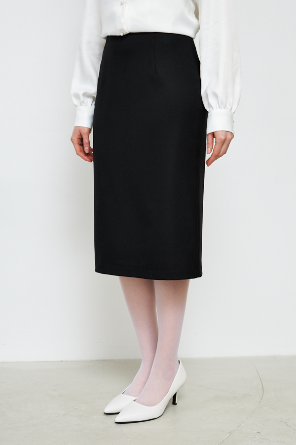 Юбка прилегающего силуэта из костюмной ткани. Сзади по среднему шву застёжка-молния, снизу шлица с разрезом. Изделие без пояса, верхний срез обработан обтачкой. На передней и задней половине юбки выполнены талиевые вытачки. Юбка на притачной подкладке.