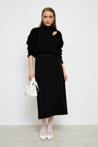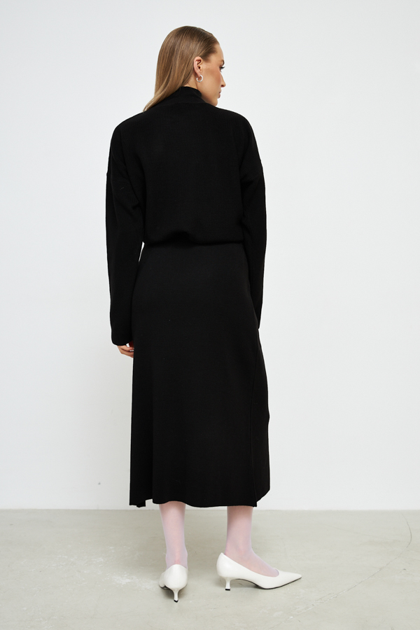 Юбка, расширенная книзу с эластичным поясом. Изделие выполнено из мягкой структурированной пряжи.