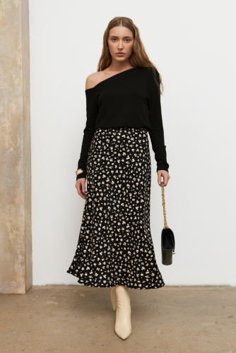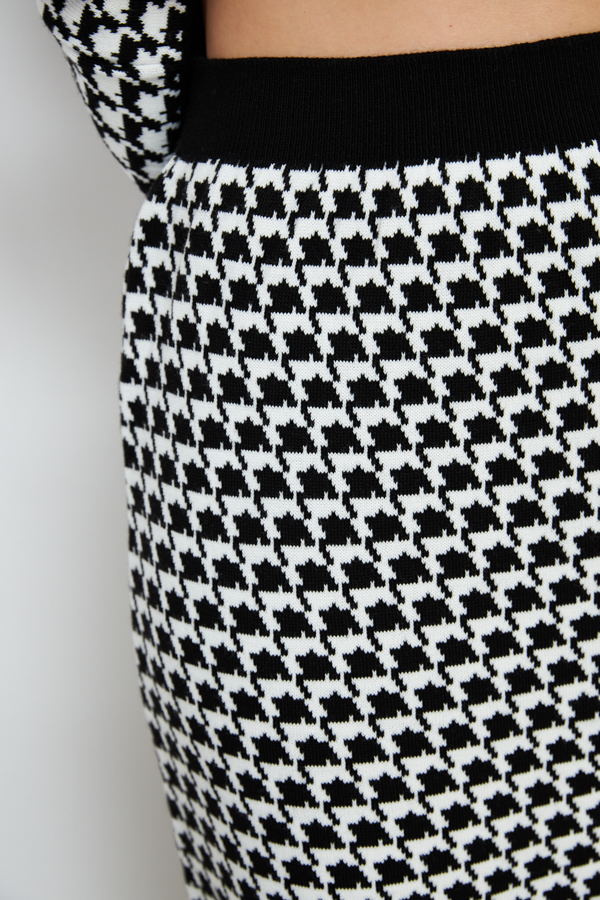 Юбка прилегающего силуэта с эластичным поясом. Изделие выполнено из мягкой структурированной пряжи.