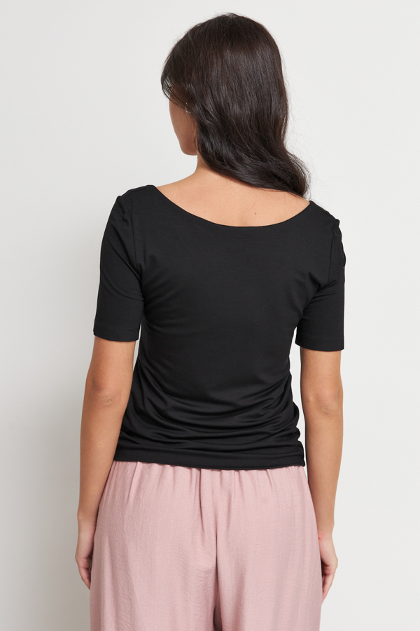 Двухслойный джемпер полуприлегающего силуэта из вискозного эластичного полотна. Втачной короткий рукав, круглый вырез горловины. Благодаря двухслойности переда и спинки изделие скрывает мелкие недочёты фигуры и делает силуэт более ровным. Актуальный джемпер придаст совершено особое звучание и строгим классическим брюкам, и нарядной юбке и даже спортивному костюму. Его легко применять для создания разных образов.