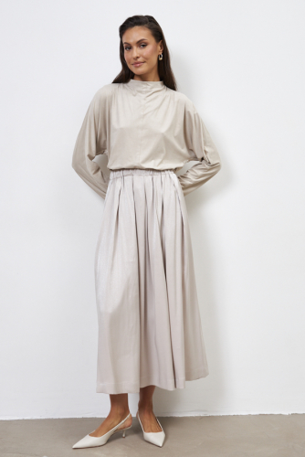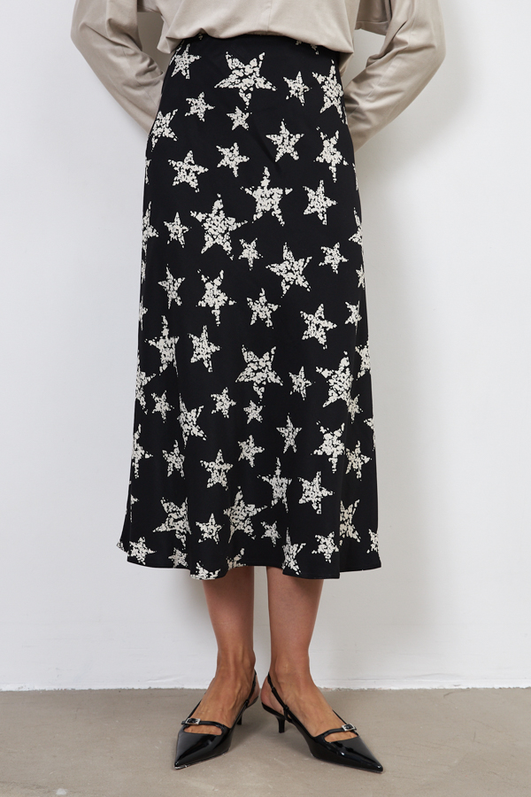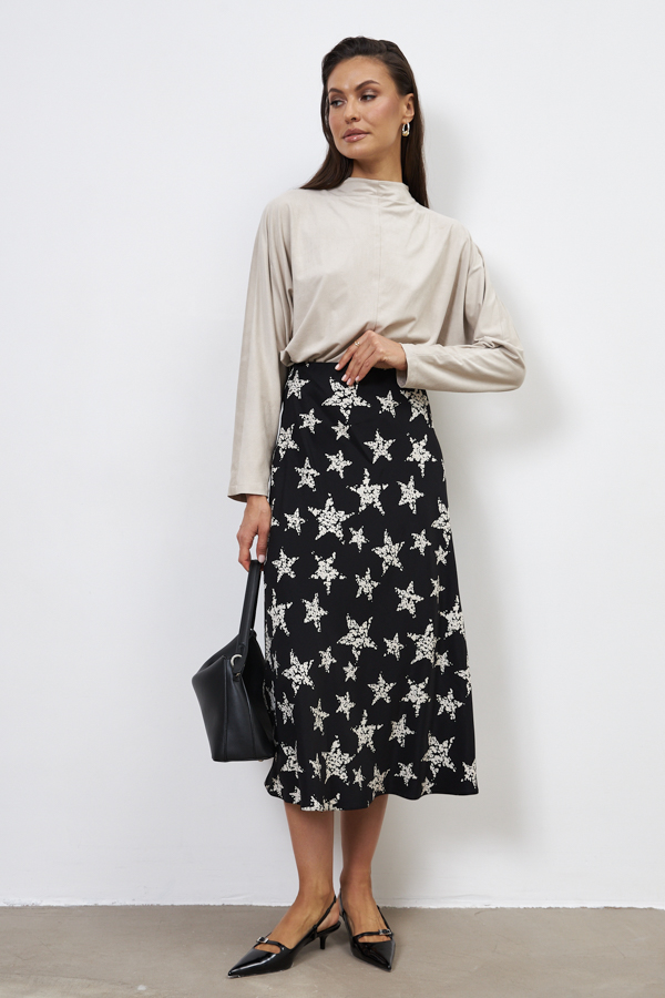 Юбка из вискозной ткани, слегка расширенная книзу. Крой юбки по косой, на линии талии скрытая резинка.