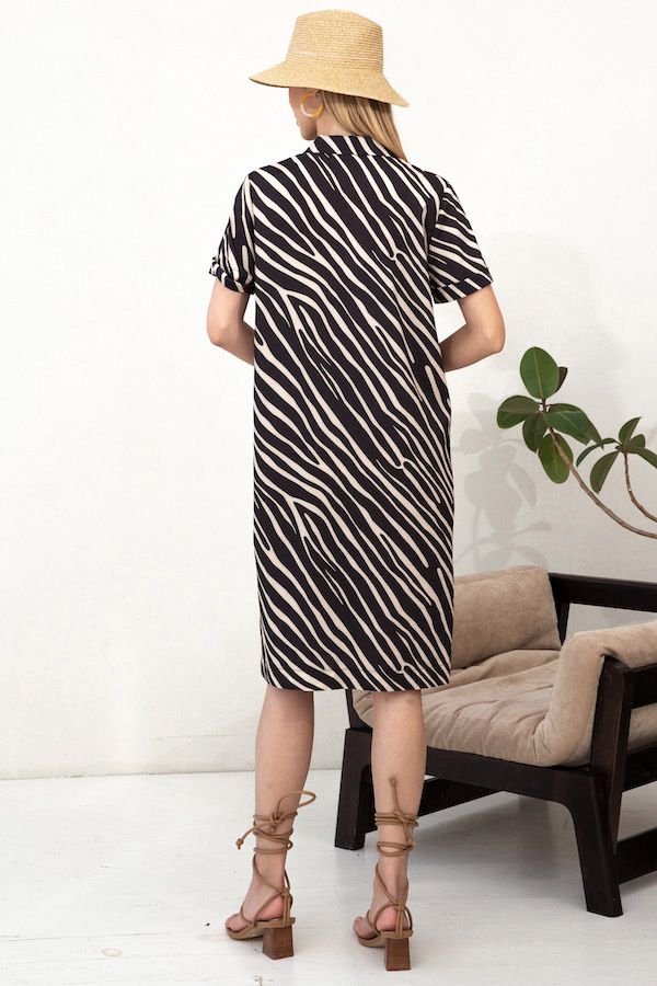 Платье из вискозной плательной ткани прямого силуэта с застёжкой на пуговицы. Втачной короткий рукав с отворотом. Вырез горловины оформлен английским воротником, который визуально сделает фигуру стройнее и подчеркнет красивую линию груди. В комплекте пояс из основной ткани.