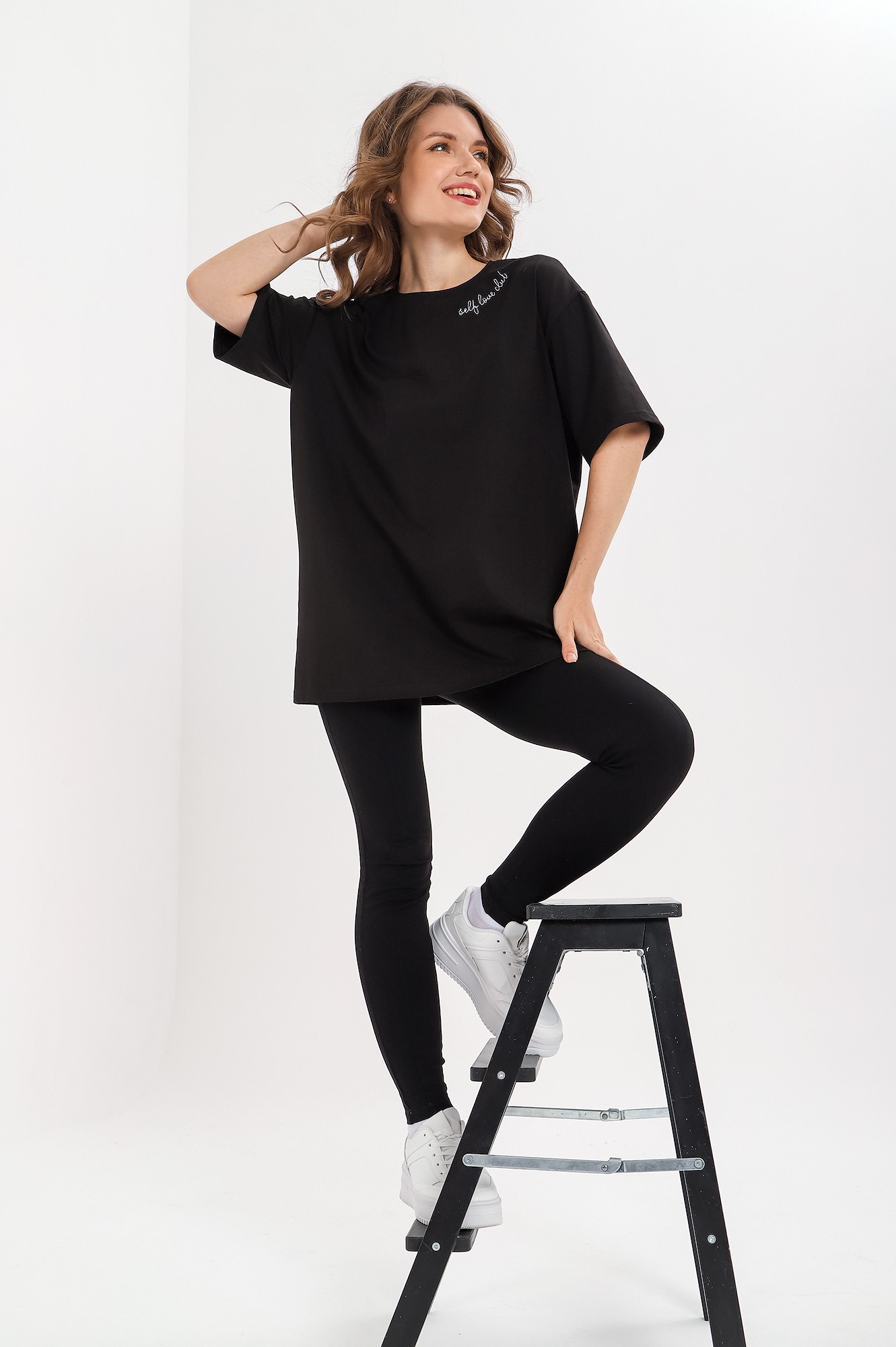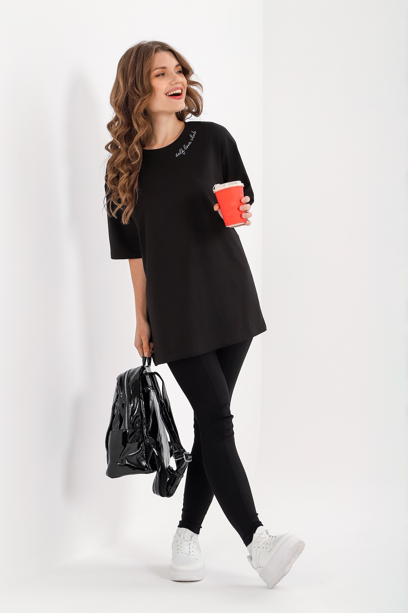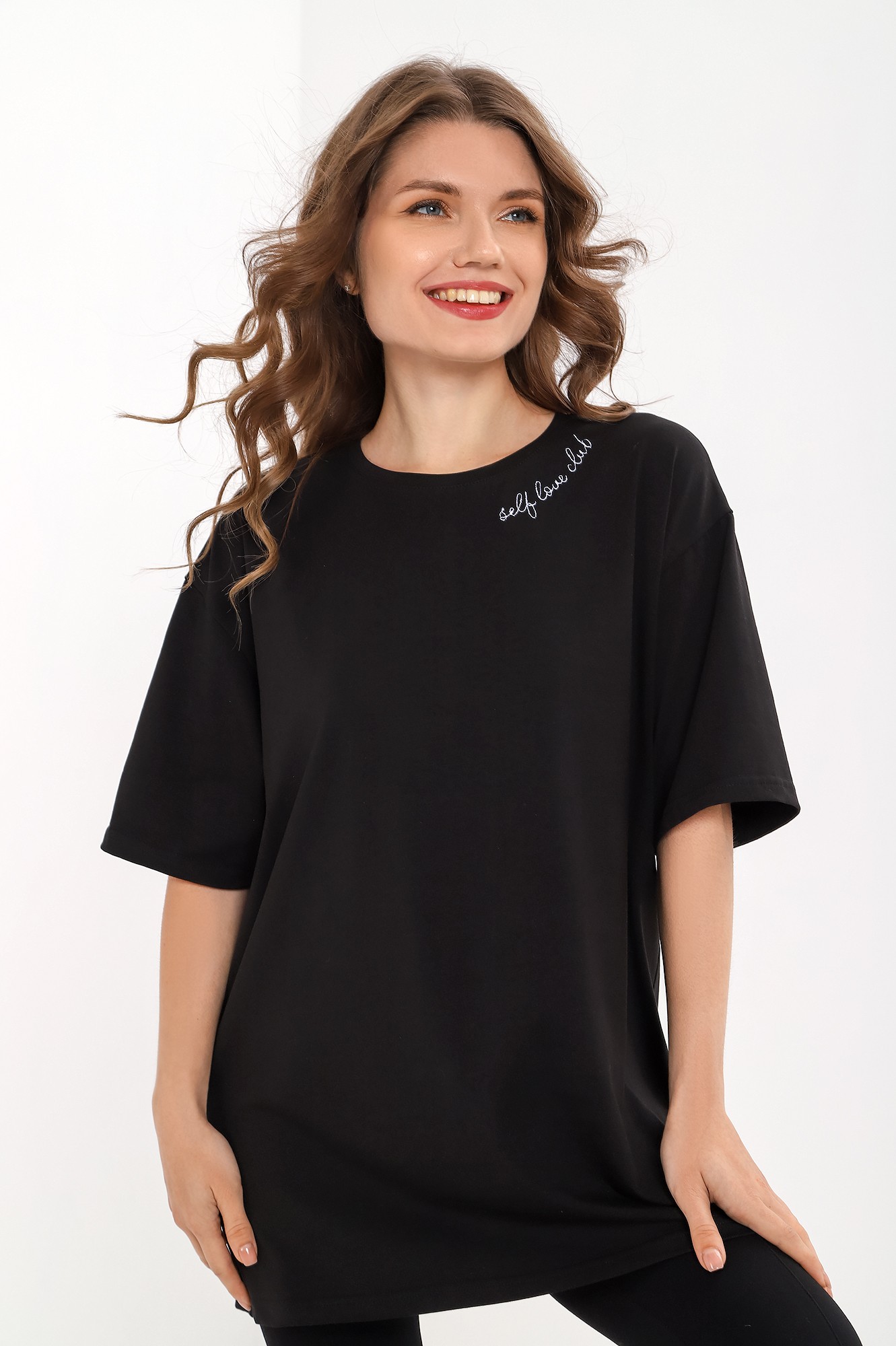 свободного покроя оверсайз, с короткими втачными рукавами, горловиной овальной