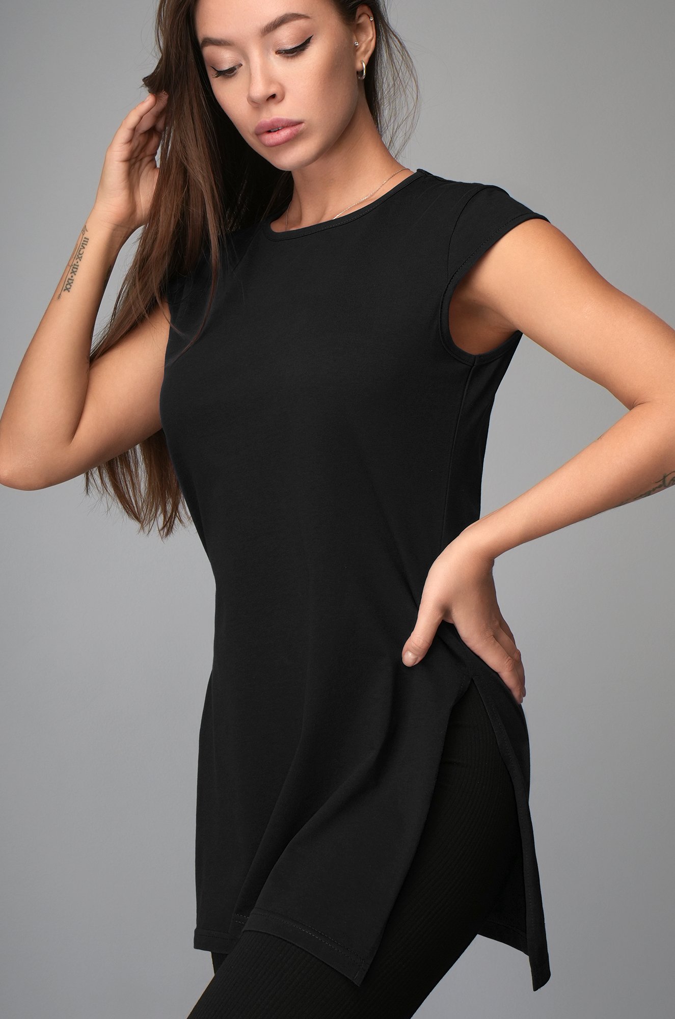 Пополните свой летний гардероб футболкой-туникой, которая восхитит своей простотой и комфортом. Длинная футболка черного цвета станет любимым выбором для повседневного наряда, добавляя нотку свежести и легкости в каждый день.