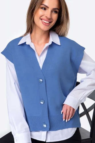 Женский вязаный жилет оверсайз – стильный и уютный элемент базового гардероба, который не только дополнит образ, но и согреет в холодную погоду. Вязаная жилетка one size подходит девушкам с любым типом фигуры, V-образный вырез подчеркнет зону декольте.
