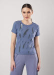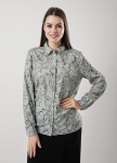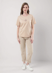 Джемпер из трикотажного полотна джерси фактурное, свободного кроя. Округлая горловина с обтачкой. Спереди по плечевому шву небольшая кокетка. По спинке рукав реглан, спереди рубашечный. По низу изделия и рукавов манжет. Спереди вышивка пеной.