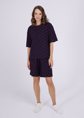 Вязаный джемпер прямого силуэта из вискозной пряжи с добавлением нейлона. Короткий втачной рукав. Основное переплетение гладь. Округлая горловина с бейкой. По низу изделия и рукавов манжеты.