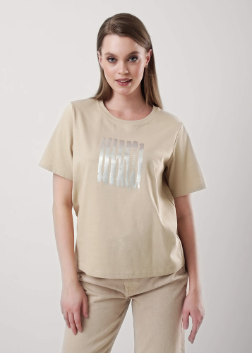 Футболка расслабленного кроя из плотного хлопкового трикотажного полотна. Короткий втачной рукав. Округлая горловина с обтачкой из рибаны. По переду принт пленка.