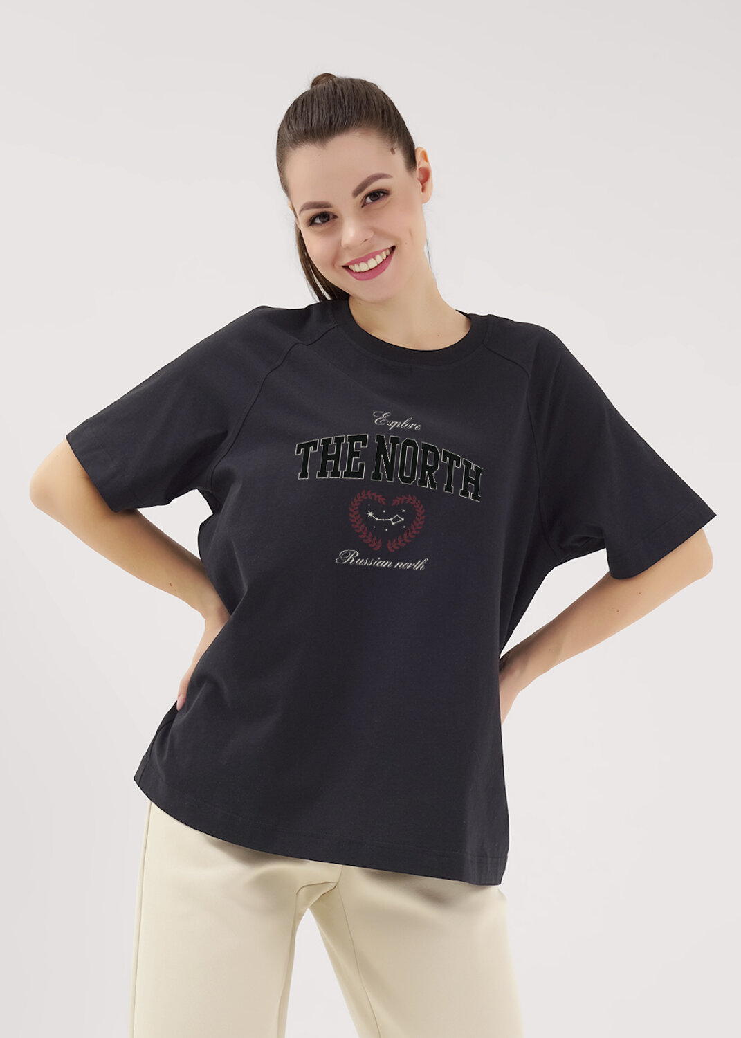 Футболка спортивная прямого силуэта из хлопкого трикотажного полотна. Короткий рукав реглан. Округлая горловина с обтачкой из рибаны. Спереди принт.