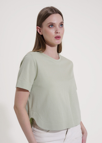 Футболка для дома из хлопкового трикотажного полотна прямого силуэта. Короткий втачной рукав. Округлая горловина с обтачкой. Спереди принт, нашивка.