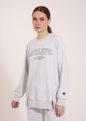 Куртка спортивная из трикотажного полотна футер,на молнии. По горловине капюшон на подкладе со шнуром. Длинный рукав со спущенной линией плеча, нашивка.По низу рукава и изделия манжеты. Спереди карман кенгуру, принт.По пройме и шву рукава открытый срез.