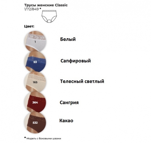 Классические женские трусы Classic без боковых швов. Просты в уходе и долговечны благодаря проверенной временем конструкции и качественному трикотажному полотну ластичного переплетения из хлопка пенье. 100% хлопок